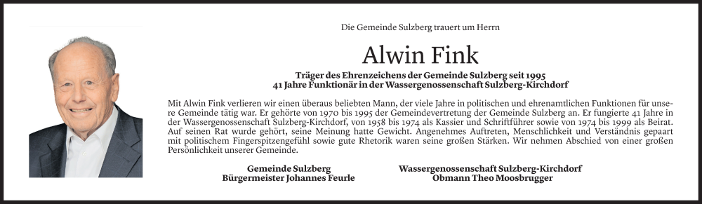 Hier finden Sie alle Todesanzeigen aus der Zeitung, die bisher für Alwin Fink erschienen sind.