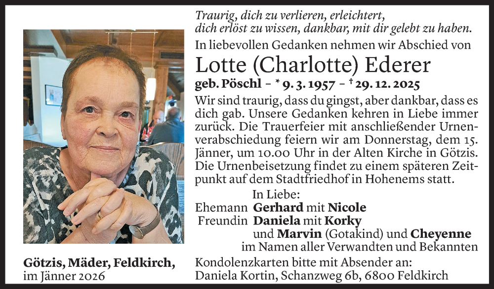 Hier finden Sie alle Todesanzeigen aus der Zeitung, die bisher für Charlotte Ederer erschienen sind.