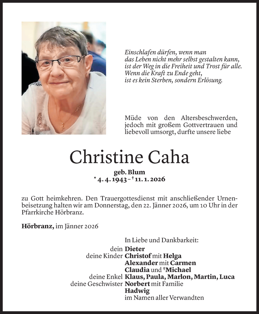 Hier finden Sie alle Todesanzeigen aus der Zeitung, die bisher für Christine Caha erschienen sind.