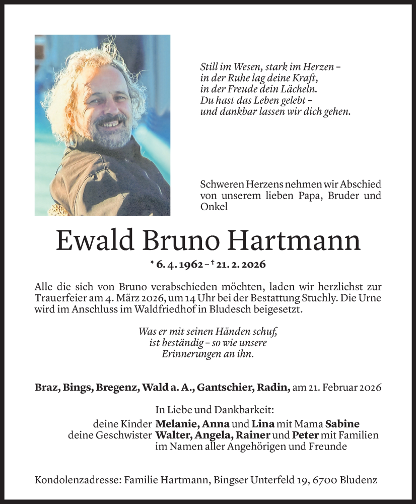 Hier finden Sie alle Todesanzeigen aus der Zeitung, die bisher für Ewald Bruno Hartmann erschienen sind.