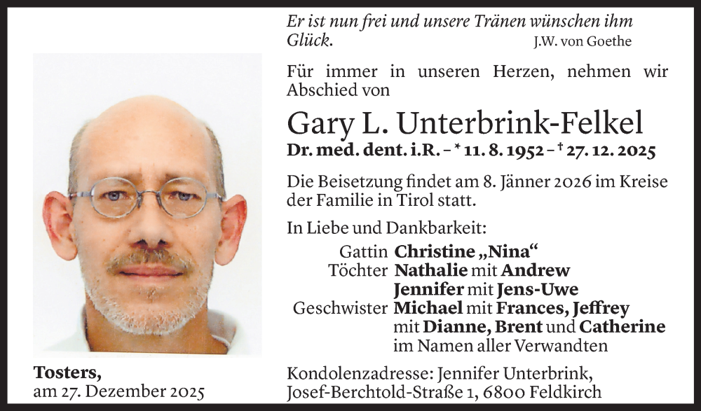 Hier finden Sie alle Todesanzeigen aus der Zeitung, die bisher für Gary Unterbrink-Felkel erschienen sind.