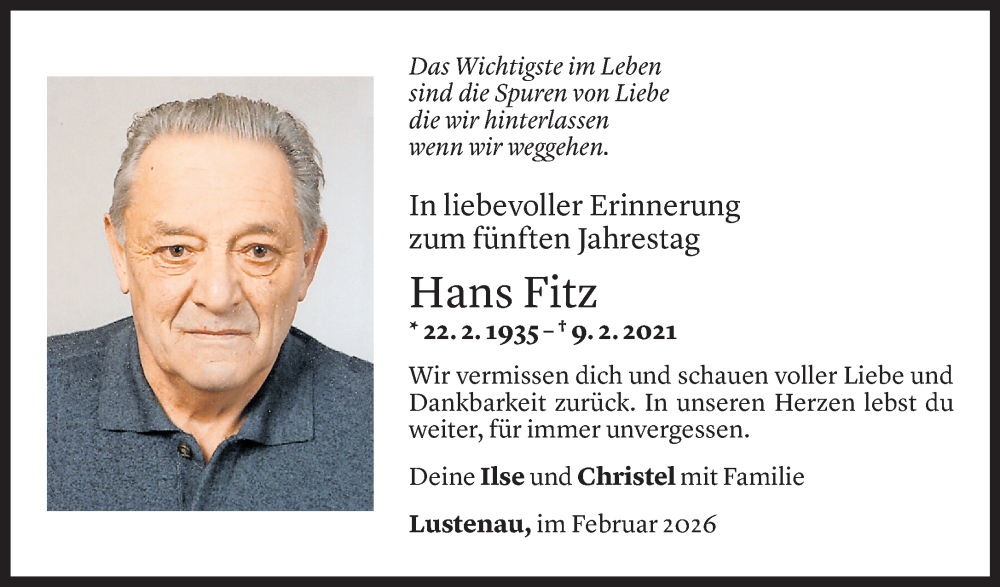 Hier finden Sie alle Todesanzeigen aus der Zeitung, die bisher für Hans Fitz erschienen sind.