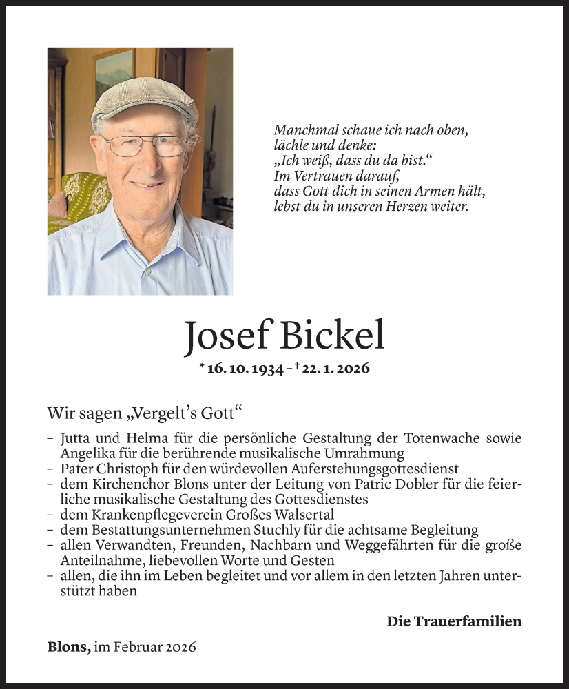 Hier finden Sie alle Todesanzeigen aus der Zeitung, die bisher für Josef Bickel erschienen sind.