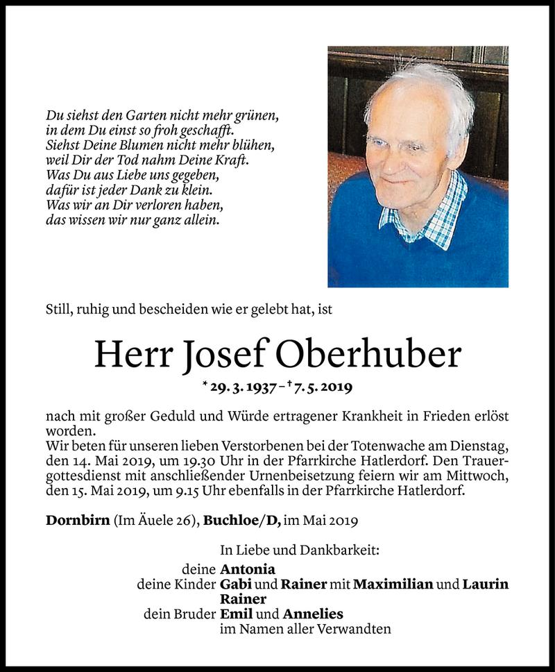 Hier finden Sie alle Todesanzeigen aus der Zeitung, die bisher für Josef Oberhuber erschienen sind.