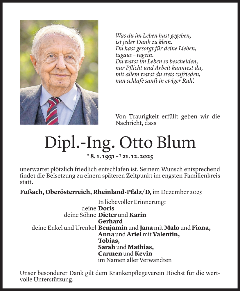 Hier finden Sie alle Todesanzeigen aus der Zeitung, die bisher für Otto Blum erschienen sind.