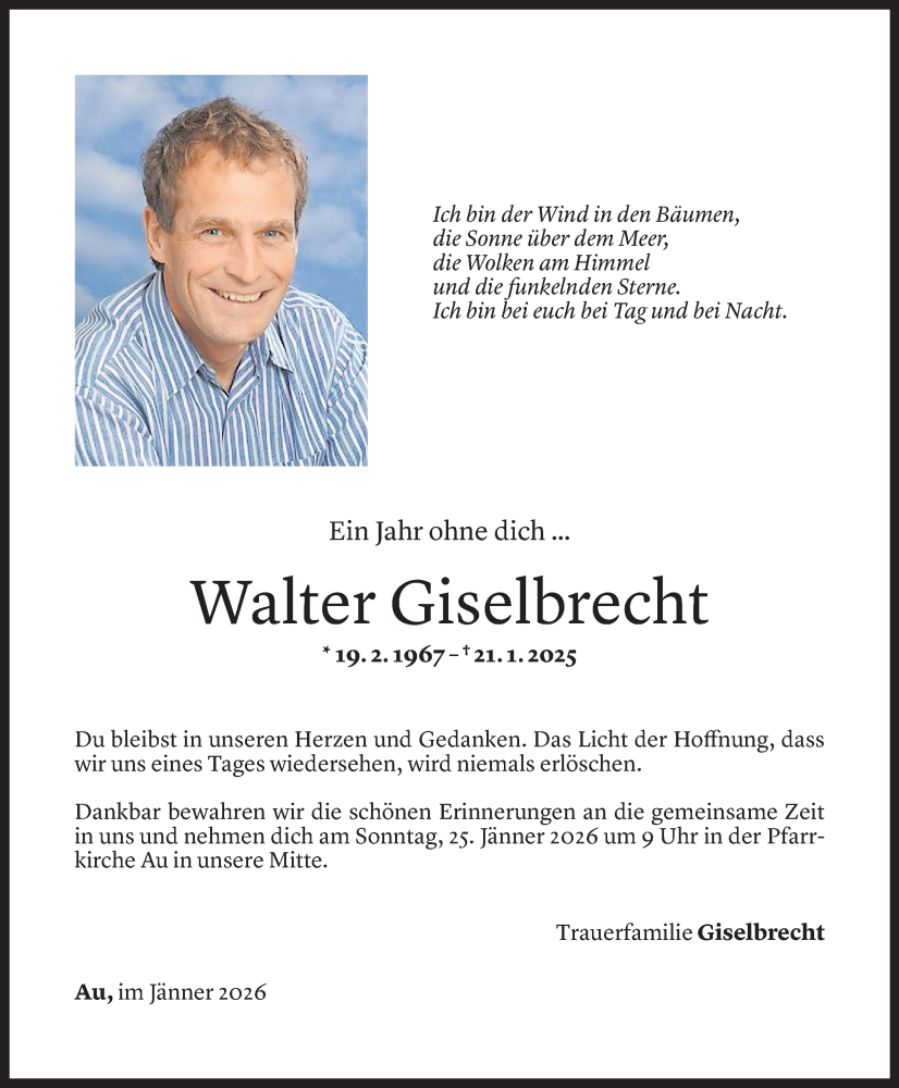 Hier finden Sie alle Todesanzeigen aus der Zeitung, die bisher für Walter Giselbrecht erschienen sind.